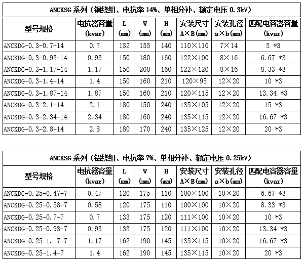 技術要求:適用電容器5kVAR;7%電抗率;銅芯