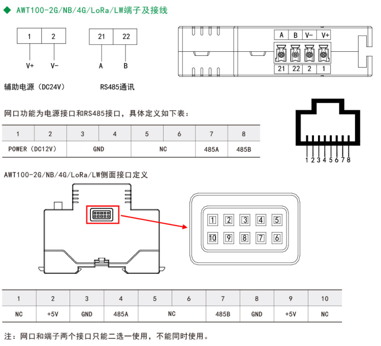 注:①AWT100-2G/NB/4G無線通信終端能通過安科瑞平臺協議與安科瑞服務器通訊。