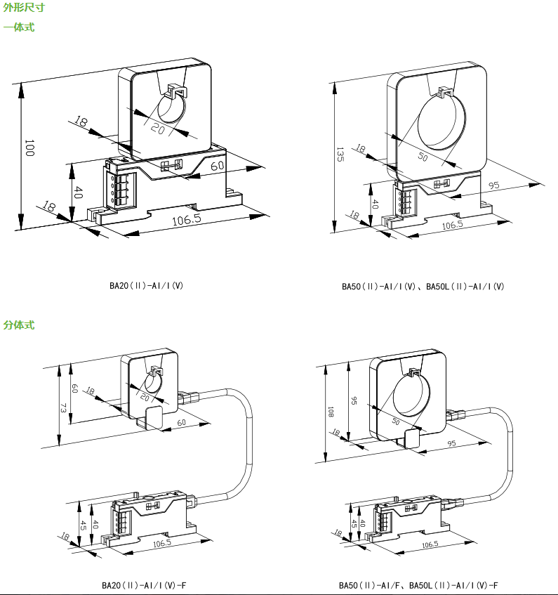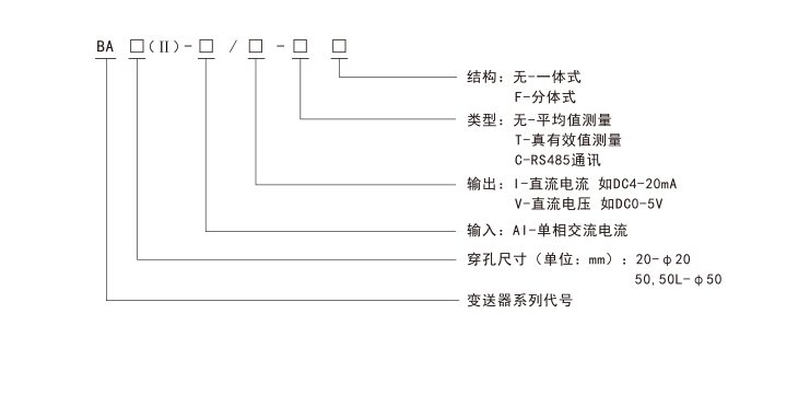 具體型號:BA20(Ⅱ)-AI/I一體式平均值交流電流傳感器