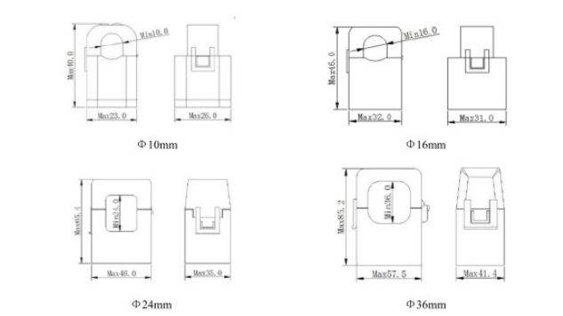 安科瑞ACR10R系列單相多功能儀表最大可做到300A,開口式互感器尺寸有4種規(guī)格,分別是10mm,16mm,24mm和36mm.方便安裝,儀表主體導軌式安裝。