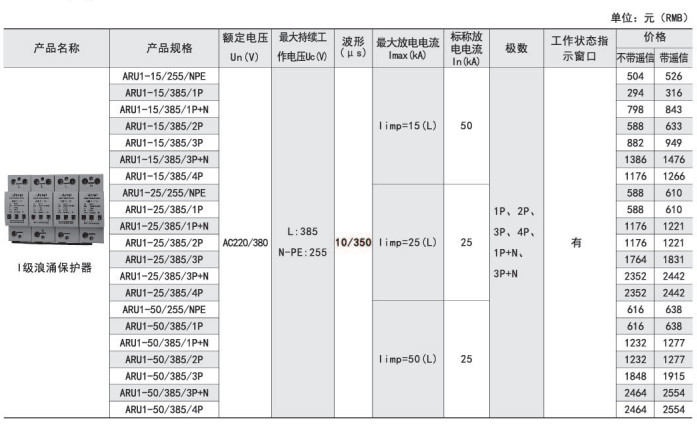 ARU1-15型SPD技術參數